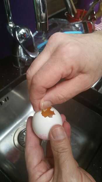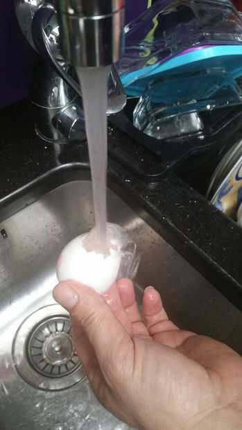 Luego vierta Coloque la yema de huevo y lavar la cáscara. Puede mantener la yema y el blanco para som Pascua para hornear más tarde.