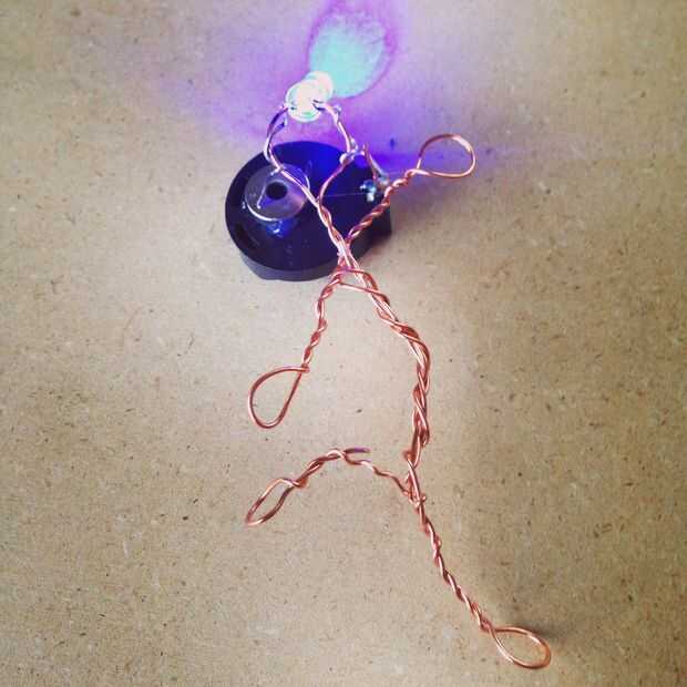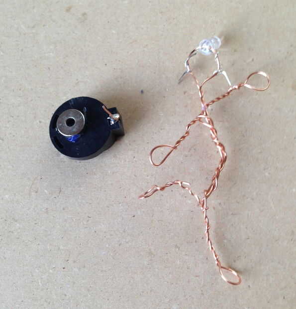 4. con el clip de la batería, las piernas de Oriente el LED para que la pata negativa se conecta con el imán y la pata positiva se basa en el perno de seguridad.