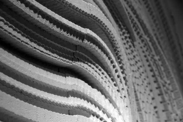 A través de reutilizar el material de aislamiento entresacar, (el artista) nos proporcionó materiales gratuitos para la producción, disminuyendo así la creación de residuos y vertido de costo para el contratista. Este tipo de enfoque cuna a la cuna/grave de diseño permite una innovación de la creación y fusión entre arte y arquitectura.