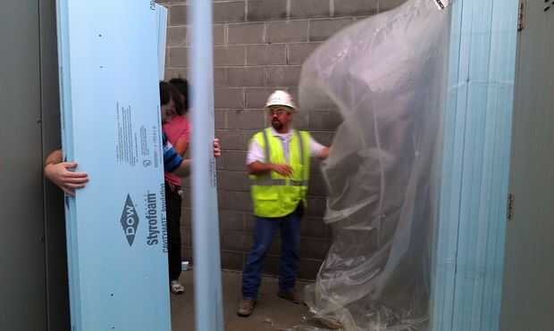 El DOW EPS espuma utilizado para molino CNC, productos y fabricar GEO-cognición fue posible a través de donaciones de un sitio de construcción (un edificio comercial en el campus de la Universidad de Houston), por el que el administrador del sitio nos ofreció tomar el material de entresacar.