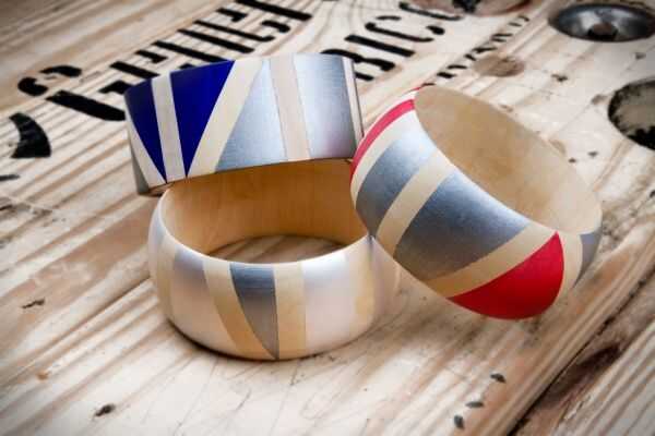 Lo que necesitará para este proyecto: pulseras de madera (preferentemente de 1" o más en anchura), bolígrafos de pintura de prueba Slob, pintura resistente al agua, de pintor o cinta de enmascarar (varios tamaños dependiendo de la forma deseada).