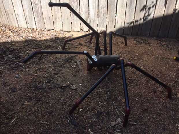 Coloca las patas delanteras para arriba en el aire a la araña un ataque pose. Los delanteros dos piernas he añadido PVC extremos demasiado.