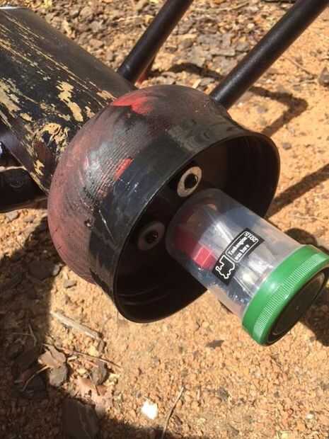Para el abdomen he utilizado un antiguo contenedor de polvo de proteína. Esto fue por lo que podría ser atornillado fuera revelando el geocache dentro. El contenedor de geocache real fue un simple frasco.