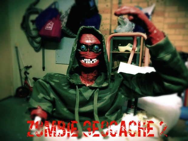 Este es el primer geocache zombie que hice. Este es sólo un medio cuerpo porque cuando se coloca, quería mirar como venía de la tierra. El zombi tiene un cerebro extraíble que contiene el libro de registro.