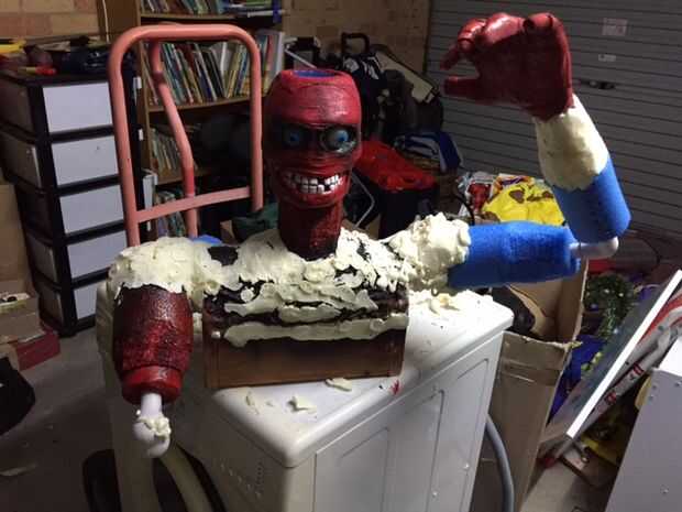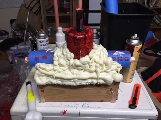 Pues yo utilizaba la espuma de expansión para darle al cuerpo más forma. He rociado sobre la espuma y utiliza un bisturí para darle forma. Aerosol pintado la espuma antes de que seca bien y fue divertido así que tuve que añadir más como se puede ver en la imagen.