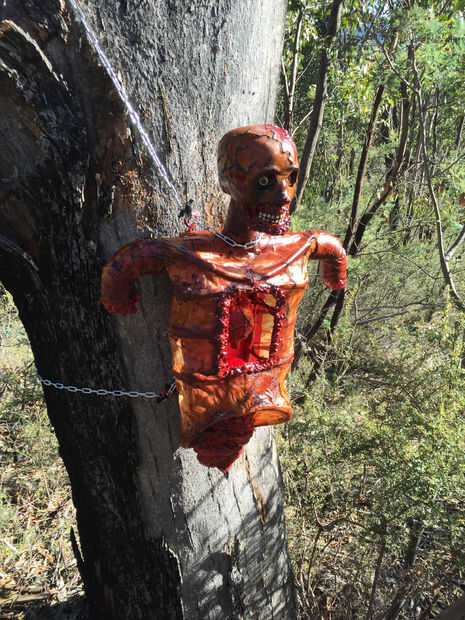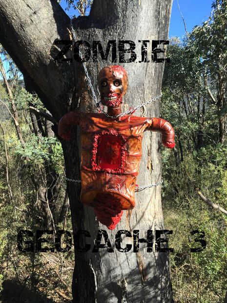 Este es el primer geocache zombie que hice. Este es sólo un medio cuerpo porque cuando se coloca, quería mirar como venía de la tierra. El zombi tiene un cerebro extraíble que contiene el libro de registro.Materiales:· Tubo de PVC· Cemento de PVC· Ep