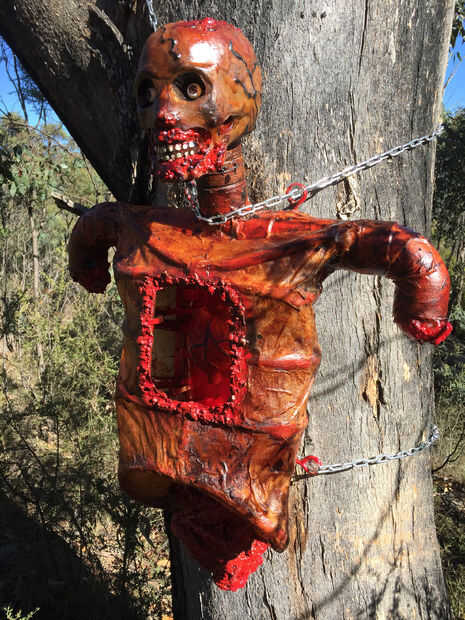 Este es el primer geocache zombie que hice. Este es sólo un medio cuerpo porque cuando se coloca, quería mirar como venía de la tierra. El zombi tiene un cerebro extraíble que contiene el libro de registro.Materiales:· Tubo de PVC· Cemento de PVC· Ep