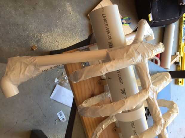 Materiales:Globos x 3Bolsas de plástico x 3Cinta de enmascararExpansión de espumaPantimediasTuberia de riegoRiego se une - ángulo recto x 18, x 1 Cruz, en forma de T-x 2Palillo del resplandor x 2Pelotita de ping pong x 1Bridas x 4Envase de la medicin