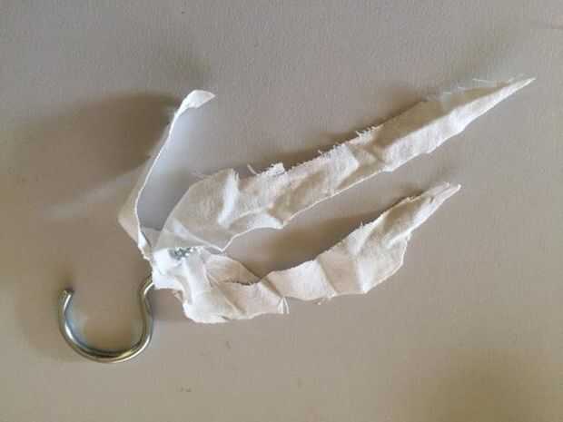 Hice una cadena de los huesos del cuello que vino con los 'Bag'o' huesos, un frasco que he comprado de una farmacia y algunos cortan pedazos de tela. El frasco de la muestra fue a sostener el libro de registro. Pegué la tela para que el frasco con cemento para PVC, después añadí un par de bridas para cables para apoyo adicional. Usé algunas cadena de titular de una planta colgante y unos ganchos para conectar todo junto. Yo entonces aerosol pintar todo de rojo. El resultado parecía convenientemente sangriento.