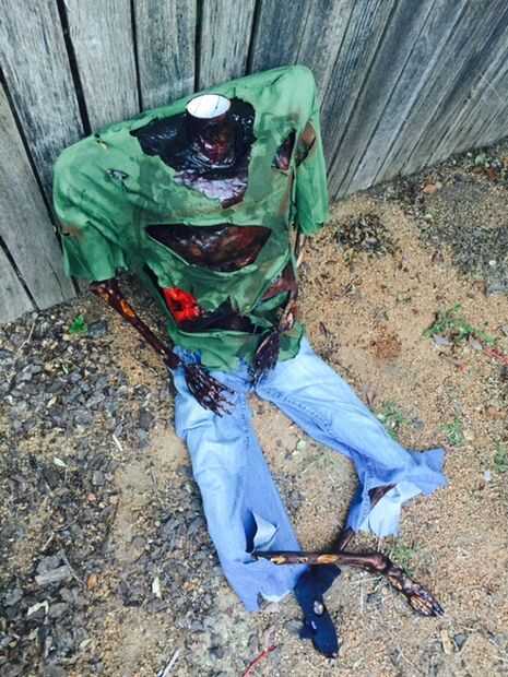 Para la base de los zombies envuelve unas camisetas viejas alrededor del área inferior para acolchado adicional.