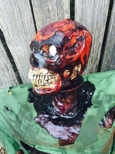También perforé un par de topes de la puerta en la parte superior de la parte posterior de la placa de respaldo. Esto permitió que el Zombie apoyado contra la pared y dejar suficiente espacio para la cabeza que ser tirado fácilmente dentro y fuera.