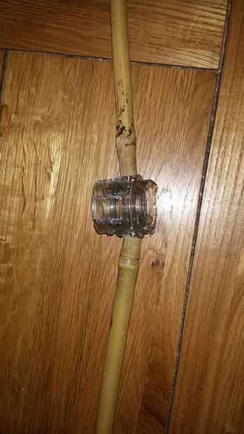 Después de mi generación inicial quería construir un V3 pero que significó más cubos y más perchas, así que de nuevo a la mesa de dibujo. Entonces una noche me desperté con la idea de utilizar botellas de plástico. Real me sentaba para arriba en la cama lo dibujó y se volvió a dormir. Al día siguiente que llamó el prototipo se puede ver. es tan simple. cortar la parte superior de una botella y desmontar las manipulación anillo 5 o 6 agujeros y cortar por el hilo a los orificios. Utilice un tornillo normal en el extremo del bambú con o con hacia fuera una lavadora. Ranura en los agujeros y luego vuelva a enroscar la tapa. Hace un cubo sólido adecuado.