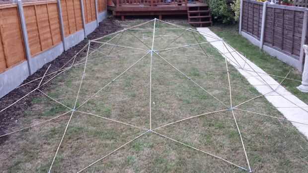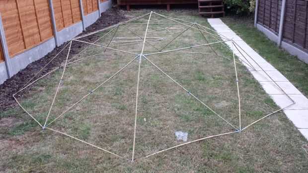 Construir el Pentágono superior primero y trabaje su manera abajo. Esto funciona bien para domos de luz y cuando tienes poca gente ayudando a que no puede alcanzar los 2m