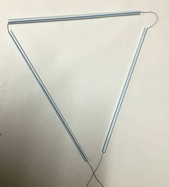 Las formas se hacen ensartando algodón a través de la paja una para hacer triángulos que vincularse para formas sólidas.