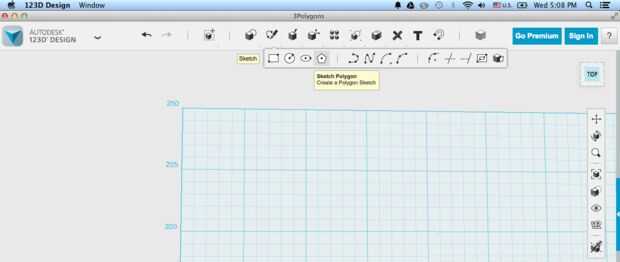 Para crear un Pentágono en la cuadrícula en el 123D diseño