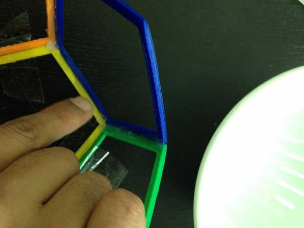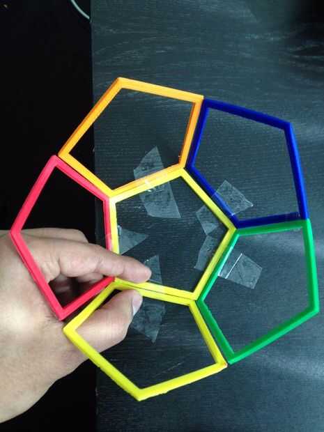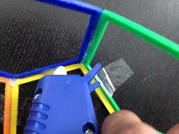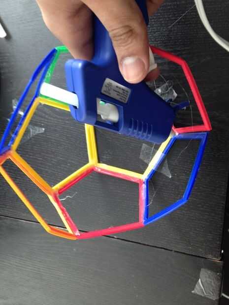 Utilice la misma técnica de cinta de pegamento caliente los otros polígonos hasta el dodecaedro se completa.