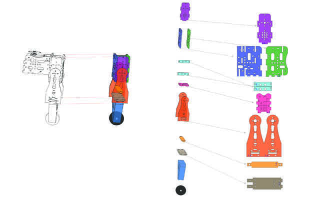 Sujetar piezas junto con ataduras de cremallera y luego fije cadera segmento al segmento de la rodilla, esto para las seis piernas.