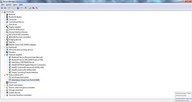 Asegúrese de que el puerto COM de Edison aparece después de todo este proceso de configuración ;)