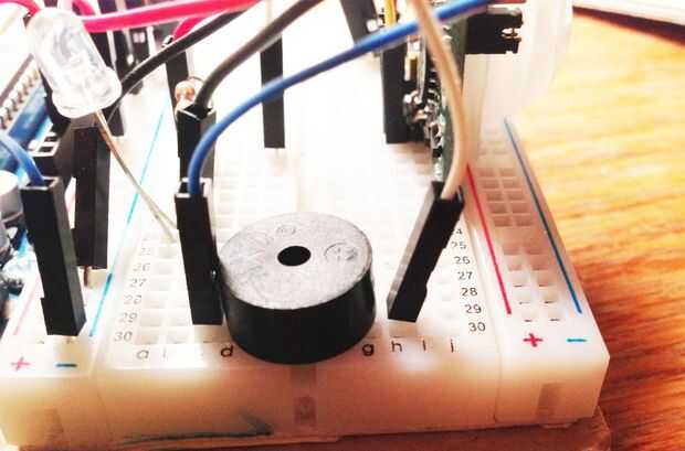 Instalar altavoces -Coloque el altavoz en cualquier parte del tablero donde no interrumpe otras cosas. -Conecte cada extremo del altavoz al arduino como se muestra en diagrama circuito.