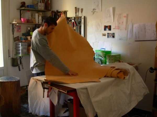 Después de la selección de la piel, proceder con el corte de la materia prima.