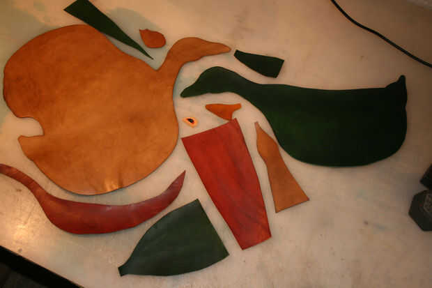 La gama de colores coinciden con los de la "Germana Reale", un pato generalizada en Europa: bosque verde para el cuerpo, de color rojo brillante para el vientre, amarillo para el pico, tan para el ala, la mejilla y la parte posterior. Los ojos se dibujan con colores especiales directamente sobre la piel.