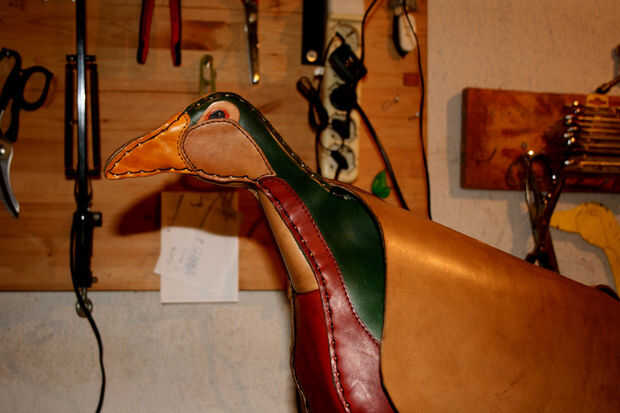 Cara anterior, cara posterior y los lados se cosen manualmente.