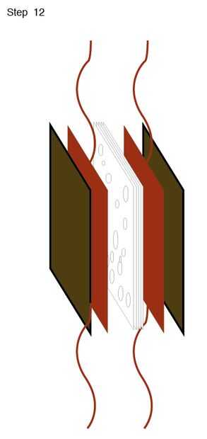 ahora completa los botones haciendo un sándwich en estos orden primero una superficie dura como madera (tripex o fibra o acrílico tablero de densidad media), la hoja de cobre soldado al cable - luego una hoja de la espuma unos 5 mm de espesor pero asegúrese deja espacio para contacto abiertos pequeños agujeros entonces otra vez la hoja de cobre y una superficie dura.