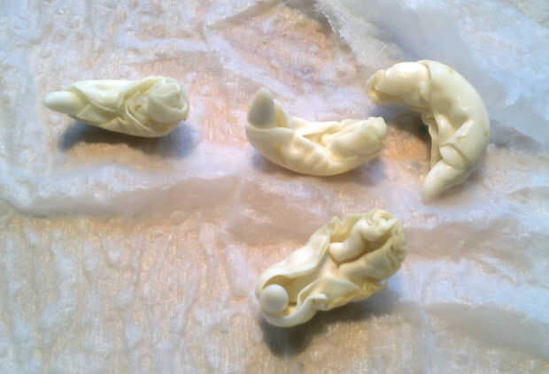 Los embriones son casi como el animal, la raíz forma es bien visible y aparecen llenos de vida.