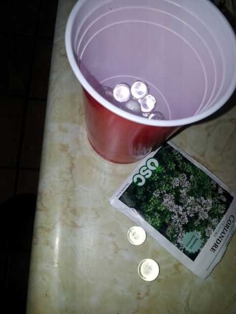 Desde el almacén del dólar, hay bolitas de gel que retiene el agua por un tiempo muy largo. Remoje las bolas en la taza de agua hasta su total absorción. Drenar el exceso de agua