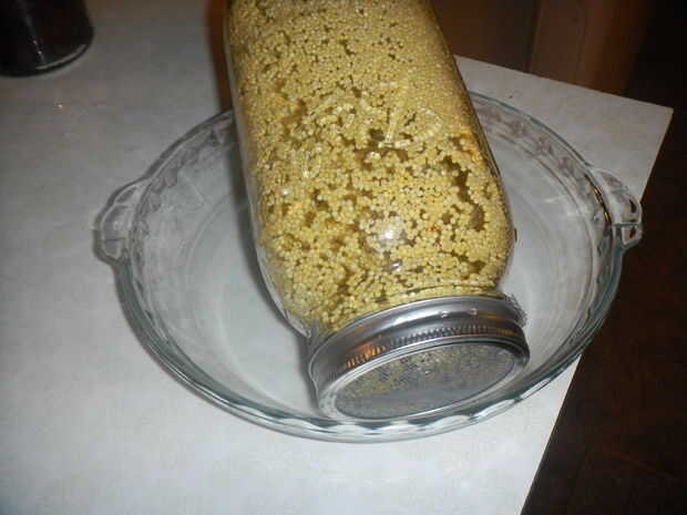 sacudir la quinua a lo pone hacia fuera en la jarra uniformemente.