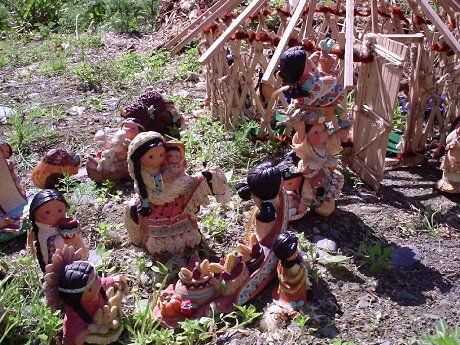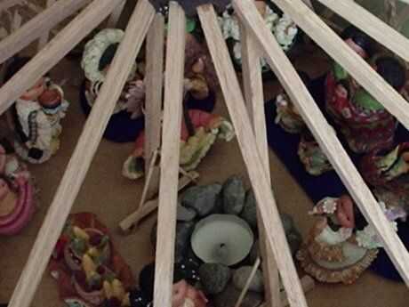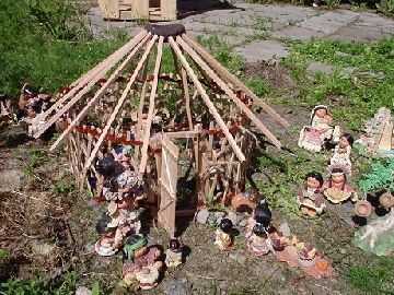 Para las cubiertas experimenté con varias telas diferentes y entonces dejé a mis jóvenes amigos Lacey y Christian cubrirlo debe buscar la forma en que pensaban. Su madre donó todas las estatuas indias poco que eran casi el tamaño perfecto para él. Es una casa del gran juego.