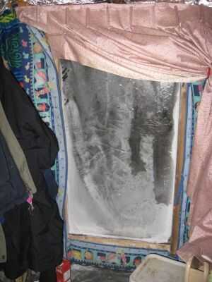 Hice la puerta por la ventana que he recogido en una venta de garaje por lo que podríamos tener alguna fuera luz (mi roofring esta cubierto con una pieza de metal por lo que la luz no proviene del techo). La puerta debe cubrirse con RadiantGuard y cortinas cuando estaba por debajo de 50.