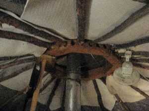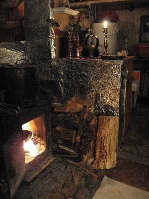 Mi roofring se cubre con una muestra del metal sobrante de uno de los patrocinadores de dogteam anterior de Tim. Corte y había doblado en un cono y un par de pernos para sostener juntos. Se deslizó sobre el tubo de la estufa con un palo largo fue terminar el techo. Un día que el viento sopló tan fuerte que arrancó el metal y lo envió volando al patio. Hizo un lazo hacia abajo para él fuera de cuerda y alambre de cobre y lo lanzó sobre él. Estado está puesto desde entonces.