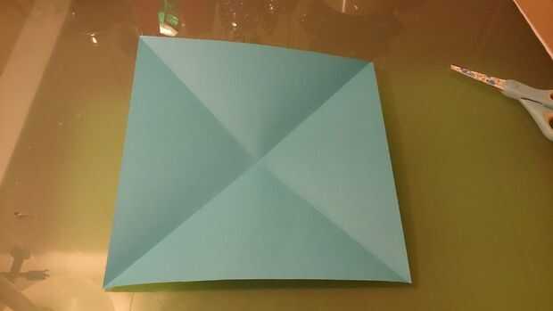Einmal ist das Papier gefalten diagonal de schon. Nach dem Öffnen monja faltet man auch noch die andere Seite diagonal. Chongqing faltet hombre eine Ecke zur gegenüber gelegenen. Ein X entsteht.