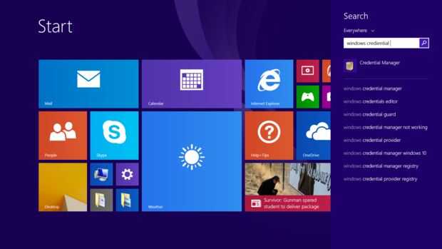 La forma más fácil de encontrar sus credenciales es de tipo "Windows credencial manager" en la pantalla de inicio en el cuadro de búsqueda, y Windows lo encontrará para usted.