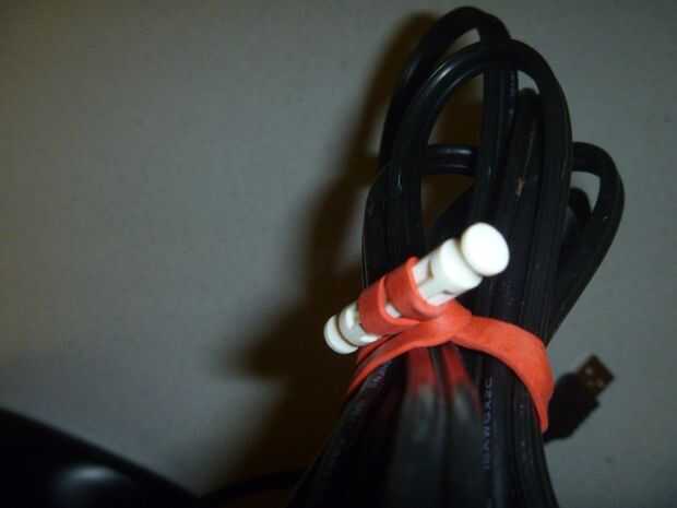 Si tienes cables demasiado largos o quieres conjunto cables a un lado, este es un truco fácil, práctico que casi no hay tiempo para hacer. Es más fácil poner y sacar que sólo una banda de goma, y lo más probable es que usted puede hacer gratis!