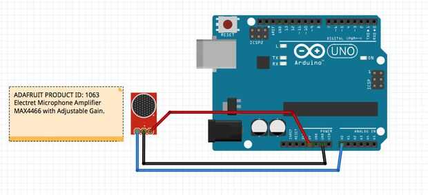 Conectar la clavija de micrófono VCC en 3.3V pin pin del arduino y el micrófono de tierra a los pines GND de uno arduino.