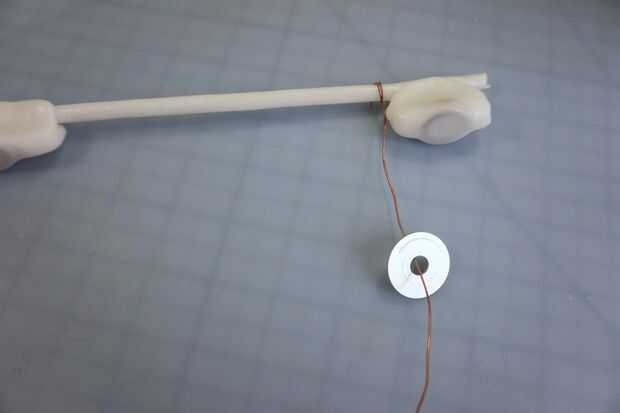 Envuelva un extremo alrededor de la barra un par de veces, entonces el elemento en el cable de la secuencia. Para artículos posteriores, usted querrá asegurarse de que los fondos están en consonancia con la primera por lo que el mármol puede golpear a todos.