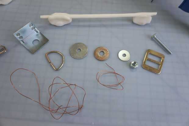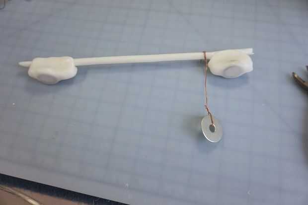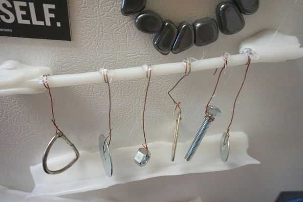 Tomar algunos elementos que harán de sonido cuando se golpea por el mármol. Me gusta con piezas de metal, como arandelas, tuercas y pernos, anillas, hebillas de cinturón, todo lo que tengo en la mano. Puede adjuntarlos con cadena, pero que como ese extra bits de control que viene con el alambre.