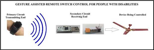 Muchas personas con incapacidad física causaron ya sea por enfermedad y lesión no puede interactuar con el ambiente exterior. Fácilmente no puede participar en el acto más simple de interacción con el mundo exterior. Tecnología asistiva que fue desarrollada para la gama movilidad de aparatos electrónicos simples a nivel complejo. El proyecto propuesto es caracterizado por severos daños en la toma de movimiento prevista (apraxia más terrible enfermedad). Este proyecto implica el uso de la acción de gesto controlado interruptor para el control de varias aplicaciones de asimiento de casa inalámbricos. El proyecto está dirigido a personas con menos de 80% de discapacidad y proporciona acceso a todos día a día los electrodomésticos. Esto les proporciona libertad y la independencia de la ayuda de otras personas.