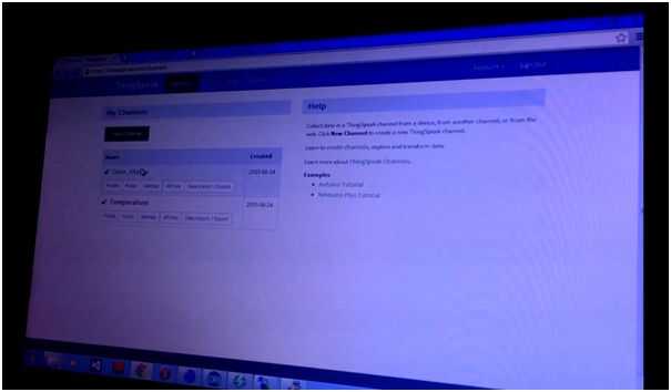 ThingSpeak cuenta en nube y crear dos nuevos canales. Nombre como Door_Status y temperatura. Nombre el primer campo para tanto el canal como 'Campo1'. Anote sus claves de API. Puede crear dos campo dentro del mismo canal en lugar de dos canales. Seguir los tutoriales disponibles en sitio web de ThingSpeak para manejo de canal, subir y recuperar datos.