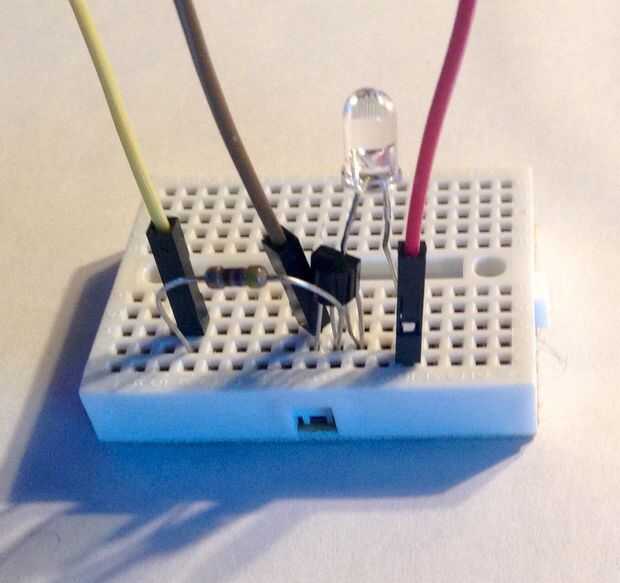 Y - finalmente - que aplicaremos una tercera capa de cableado en el protoboard blanco: el emisor de infrarrojos que es la razón de ser de este proyecto.