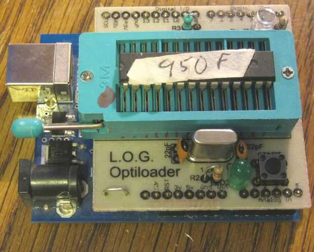Entonces tenía un zócalo ZIF (cero fuerza de inserción) de 28 pin, ahí así que decidí utilizarla y hacer un PCB para bootloading.