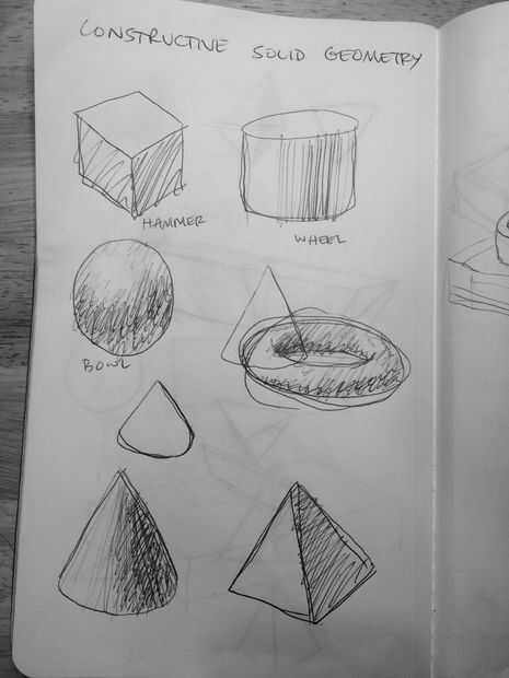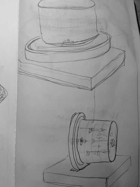 Después de desarrollar un poco la idea, colocó en agregar un martillo y una rueda a la taza y completar un simple trifecta y progresión en forma de cubo a cilindro del tazón de fuente.
