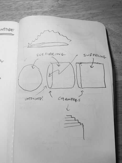 Una vez que los conceptos fueron muy bien clavados hacia abajo, había refinado los diseños y dimensiones en el proceso de fabricación. He incluido las marcas de mecanizado, destacando las trayectorias de herramienta con anchos matemática para acentuar la artificialidad y haciendo hincapié en chaflanes con una técnica similar. Dibujar es una herramienta muy importante para mí decidir sobre dimensiones y fijación, por lo que elaboró estas ideas antes de la paloma en el CAD.