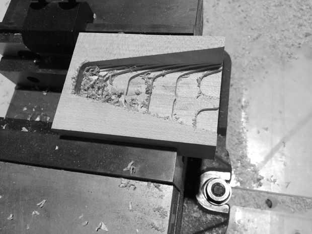 El DMS me permitió trabajar en mi modelo en la mitad. Primero muele dos bloques idénticos en la Sierra de mesa se utiliza el DMS a mitad el patrón en cada uno de la máquina. Una vez que se realizaron los dos lados, sólo debían ser pegadas.