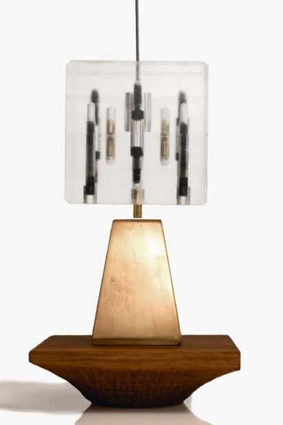 Los trozos de madera son mano formada y representan una muy íntima relación gestual con materiales naturales y primitivos que forma de ellos. Las piezas de bronce son la base de las esculturas, una maza, una rueda y un tazón de fuente, son herramientas potentes y antiguos que mientras avanzábamos más allá de nuestras interacciones animal básicas con el mundo material. Con nuestros grandes cerebros y pulgares oponibles, estas herramientas de bronce son análogas a los de una araña, una rama natural de nuestros cuerpos en el mundo material. La creación de un objeto duradero requiere nuestro intelecto, habilidad, refinamiento y arte – pero sigue siendo una parte del mundo natural, material como un nuevo fusible, re-alloyable. Las piezas de acrílico representan formas platónicas alejadas del mundo material en su totalidad, como nuestra tecnología y maquinaria de la precisión nos permite crear máquinas altamente técnicas y herramientas sociales. Al final, estos son remoción de nosotros un compromiso directo con el mundo natural, como que nos rodean en capas de idea, artefacto y artificio.