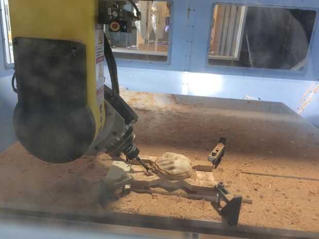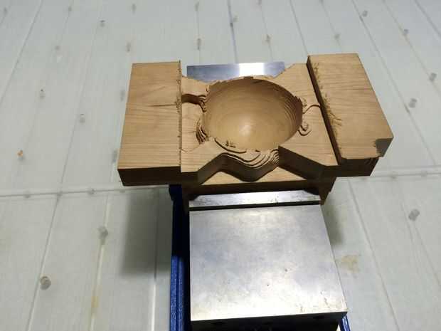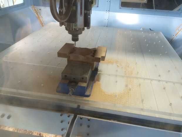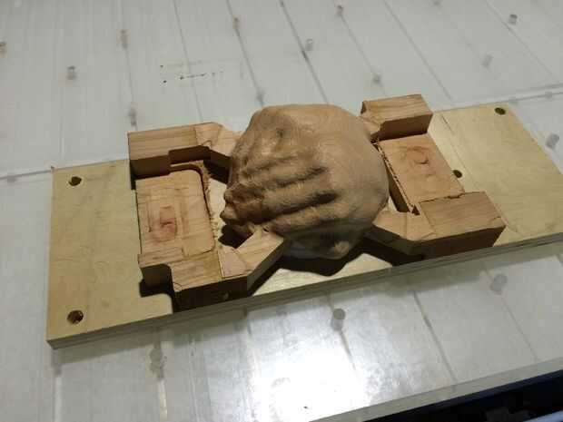 El proceso de mecanizado de las manos es un poco anal retentiva y siempre quita me bastante lejos de cualquier proceso creativo. Se trata de ser OCD que todo en la máquina coincide con todo en su computadora, y que el código entre ellos está de acuerdo con eso también. Esta parte se convierte en ejecución de precisión pura, buscando maneras de mantener estable el trabajo se mecaniza y cómo orientarlo y ubicar correctamente en el sistema de coordenadas X-Y de la máquina.