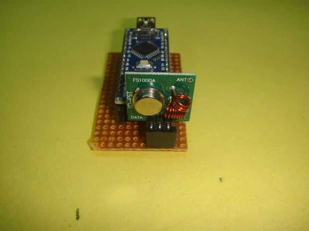 Otra vez tienes que conectar el módulo de RF a su microcontrolador pero esta vez su vuelta del transmisor. Generalmente el módulo transmisor es menor que el módulo de receptor y también tiene menos número de pines. Mi módulo de RF tiene dos bobinas y un cristal redondo pero otro tipo tiene solamente un cristal con forma oval. En el paso anterior, te dije que dejar algo de espacio en el PCB para el módulo de RF. En ese espacio de soldadura tres cubrió Rúbrica femenina y le Inserte el módulo RF. Conecte sus pines como sigue: