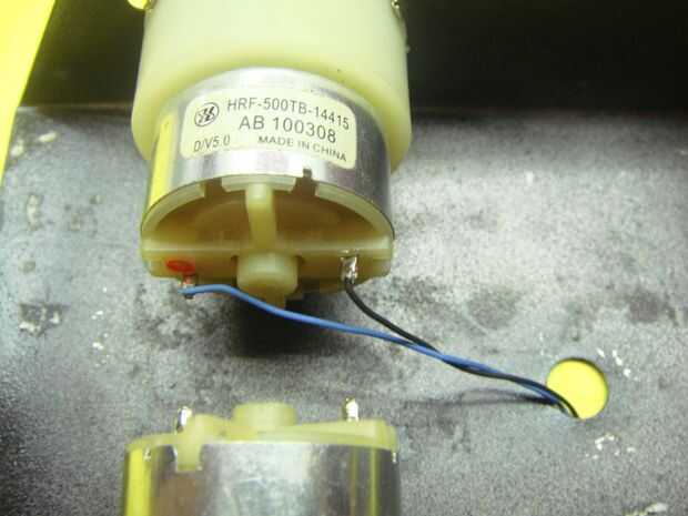 Usé dos motorreductores de aproximadamente 100 rpm para mi robot. Puedo usar motor de cuatro pero utilizando cuatro motores sería de ninguna utilidad porque bimotor fueron capaces de darle la cantidad suficiente de esfuerzo de torsión y velocidad y motor cuatro seguramente agotará la batería más rápida. También elegir motores según su uso. Montar los motores en su chasis y y la soldadura de un pir de alambre a cada uno. En el otro extremo de cable soldar algunos header macho para que fácilmente puedan conectar los motores con el protoboard. Dejar la parte delantera como es.